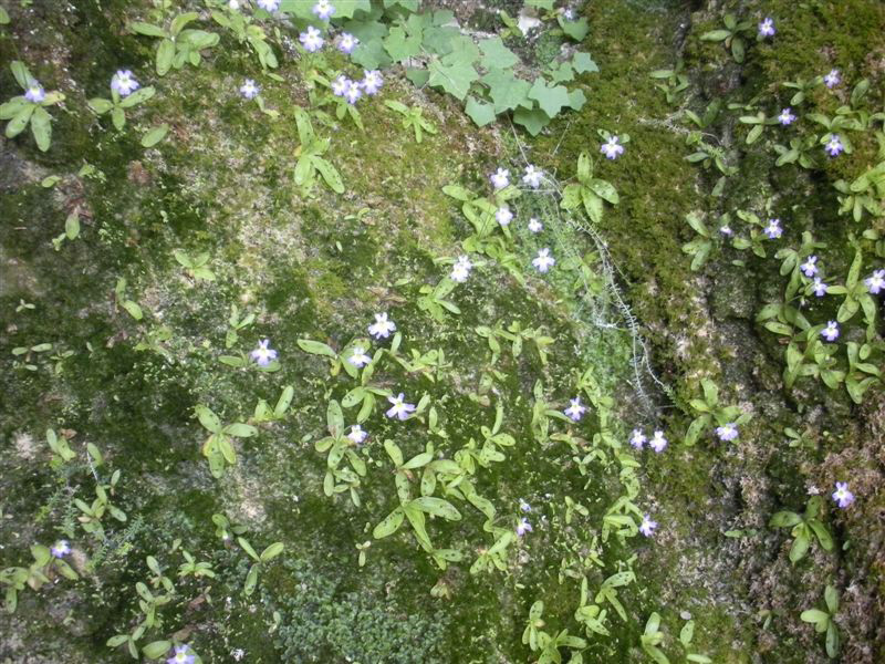 Pequeñas plantas carnívoras como la Pinguicula (grasilla) con sus rosetas basales de un verde limón acharolado y una larga flor solitaria color de rosa, verdadera trampa para pequeños insectos.
